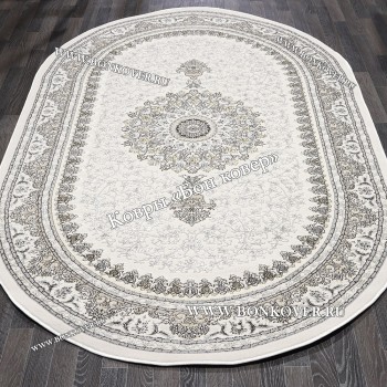 Классический ковер дизайн 104 Белый с бежевым Овал 5.0 Классический ковер дизайн 104 Белый с бежевым Овал